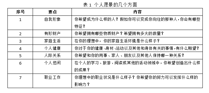 2、個人愿景主要包含的內(nèi)容,如下表1: