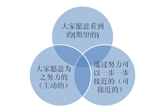 進行愿景交流是非常必要的,通過交流方能相互啟發(fā),消除分歧,和諧關(guān)系,走向一致,達成共識。愿景草案形成后還要進行反復(fù)交流和修正,再通過愿景信息的傳遞、溝通和反饋,最終才能形成清晰、獨特、持久、共同的共同愿景。