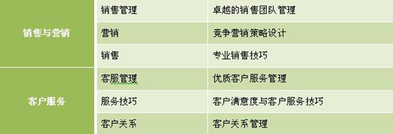 公司各個(gè)組織單元下的職能可以進(jìn)行進(jìn)一步的細(xì)分,根據(jù)細(xì)分的職能就可以確定專業(yè)方向上的培訓(xùn)課程體系。人力資源單元可以分為人力資源管理、招聘、員工發(fā)展、績(jī)效、薪酬、員工關(guān)系;行政單元可以分為行政管理、秘書;財(cái)務(wù)單元可以分為財(cái)務(wù)管理、會(huì)計(jì)、審計(jì);物流與供應(yīng)單元可以分為采購(gòu)、物流、倉(cāng)儲(chǔ);生產(chǎn)與質(zhì)量管理單元可以分為生產(chǎn)管理、現(xiàn)場(chǎng)管理、流程管理、質(zhì)量管理、過(guò)程管理;銷售與營(yíng)銷單元可以分為銷售團(tuán)隊(duì)管理、營(yíng)銷、銷售、市場(chǎng);客戶服務(wù)單元可以分為客服管理系統(tǒng)、客戶服務(wù)、客戶關(guān)系。以下為專業(yè)類課程體系部分部分內(nèi)容: